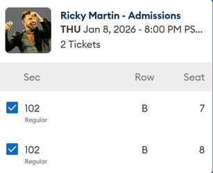 RICKY MARTIN CONCERT TICKETS $2,200Rialto, CA