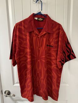 (#1) Harley-Davidson Red w/Flames Polyester Short Sleeve Shirt - Size L - Like New$25Magnolia Square, FL