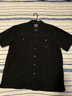 (#14) Harley-Davidson Black Pin Strip Shop Casual Short Sleeve Shirt - Size L - Good Condition$30Magnolia Square, FL