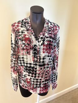 Karl Lagerfeld Pink, Black & White Houndstooth V-Neck ruffle Blouse size XS Chic, lightweight blouse with a contemporary houndstooth pattern and a fl$15Westminster, CA