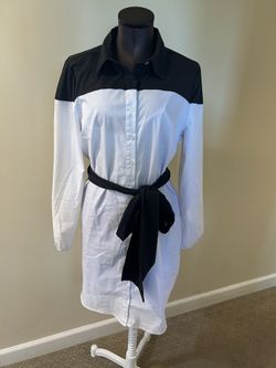 New York & Company Monochrome Long Sleeve Dress size L Chic monochrome dress with button front. Features a stylish tie belt. Ideal for versatile wear$10Westminster, CA