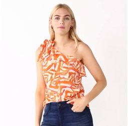 NWT Nine West Vibrant Orange One-Shoulder Blouse size M Eye-catching one-shoulder blouse with bold orange zebra pattern. Ideal for a trendy look. Fea$20Westminster, CA