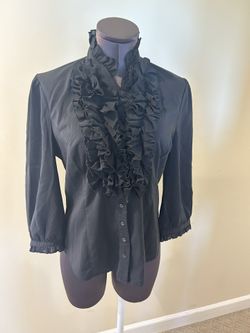 Spense Black Ruffled Blouse size S Chic black blouse with ruffled front. Perfect for versatile styling. Featuring 3/4 sleeves, front button up, ruffl$10Westminster, CA