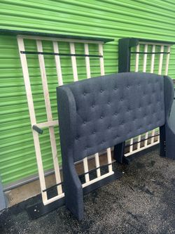 Beautiful Blue Grey Gray Queen Size Bed Frame Bedframe Sleigh Fabric Modern Contemporary $140Pembroke Pines, FL