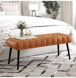 LUE BONA Entryway Bench, 44.5'' Leather Upholstered Bedroom Benches, End of Bed Bench with Metal Legs, Living Room, Dining Room, Whiskey Brown$30Fontana, CA
