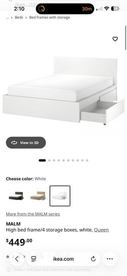 MALM High bed frame/4 storage boxes, white, Queen$250Los Angeles, CA
