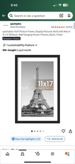 11 X 17 Picture Frame Black Brand New Condition Havent Moved From Walls $10Glendale, CA