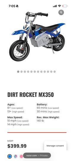 Razor Dirt Rocket Electric Motorcycle$150Methuen, MA
