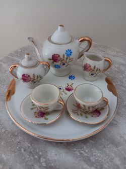 Tea Set Miniature w/Gold Trim 10 Pieces. 1.75” tall Teapot. Makes Wonderful Gift! $18Northbrook, IL