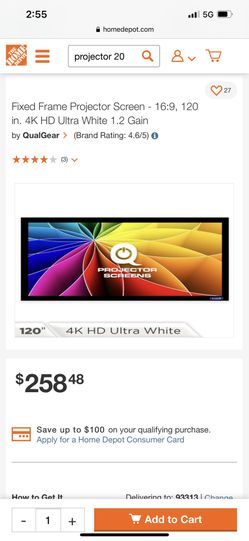 Fixed Frame Projector Screen - 16:9, 120 in. 4K HD Ultra White $200Pumpkin Center, CA
