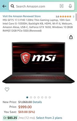 msi gf75 17inch thin gaming laptop$600Frisco, TX