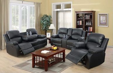 Black Leather Fully Reclining 3 Piece Couch Set$1,250Seattle, WA