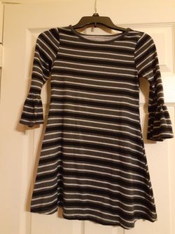 Girls Black, Dark Gray & Light Gray Striped Skater Style Dress Girls Size M 10/12. Normal wear. Must Be Picked Up.$7San Antonio, TX