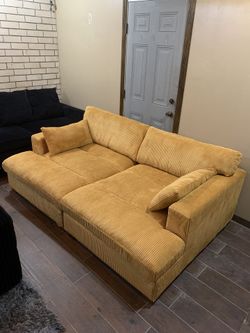 🧡💛✨Beautiful Plush 2pc Orange Velvet Cord Double Sofa Chaise$550Edinburg, TX