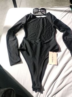 New Elegant Black Body Suit Snap On Bottom Long Sleeve Low Back With Silver Bling Attached $25$25Chino, CA