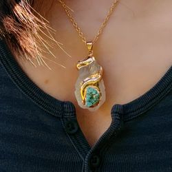 Natural Irregular Clear Quartz with Turquoise Necklace$14Pomona, CA