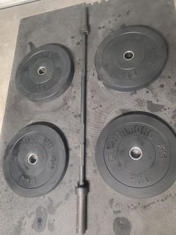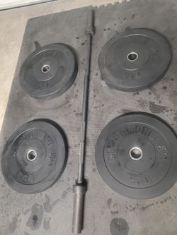 Olympic Weight Set. With Bar & Bumper Weights 180lbs All Together Read Description Below $195Hesperia, CA