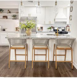 30 Height Bar Stool Set of 3 Outdoor Stool Chair with Footrest Patio Bar Height Stools Wicker Barstools for Lawn Pool Teak Counter St$259Jurupa Valley, CA