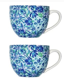 Beautiful Lilly Pulitzer 12 Oz Blue Ceramic Coffee/Tea Mugs With Gold Handles $20Port Isabel, TX