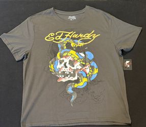 Ed Hardy Graphic T-Shirt Charcoal Skull And Shake Snake Mens Size XL NWT$30Fresno, CA