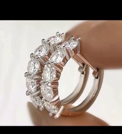14K White Gold Plated 925 Sterling Silver 1Ct Round Cut Lab Created Diamond Single Row Huggie Hoop Wedding Women Earrings$200Lancaster, PA