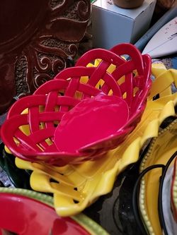 Primo' Gi Italy Red Handmade Ceramic Woven Bread Fruit Basket $25 for the 3$25Fort Lauderdale, FL