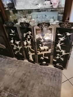 Vintage Oriental Mother of Pearl Black Lacquer Asian Wall Art 4 Plaque Panels $75Fort Lauderdale, FL
