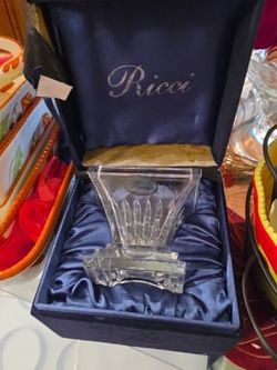 Vintage Ricci Slovakia Crystal Square Bowl 4” x 4” x 3-1/4” & Velvet / Satin Box$10Fort Lauderdale, FL
