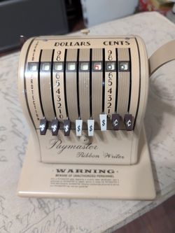 Vintage Paymaster Ribbon Writer Type 8000B Business Check Writing Machine with Key$120Pompano Beach, FL