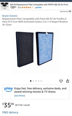 Replacement Filter Compatible with Partu BS-07 Air Purifier,2-Pack H13 True HEPA Activated Carbon 2-in-1 4-Stage Filtration Air Clean$60Coachella, CA