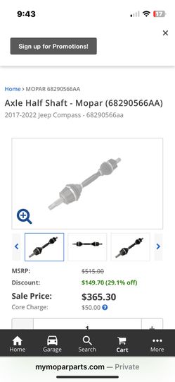 Axle Half Shaft - Mopar ((contact info removed)6AA) 2017-2022 Jeep Compass - (contact info removed)6aa$150Pembroke Pines, FL