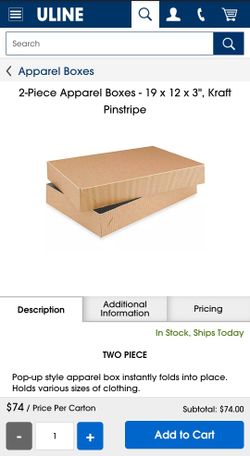 2-Piece Apparel Boxes - 19 x 12 x 3", Kraft Pinstripe S-12382 $65City Of Industry, CA