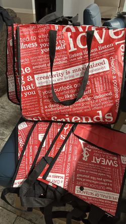 LOT Lululemon Reusable Shopping Gift Bag Yoga Tote Snap Closure Black Red 2 Sizes$40Corona, CA