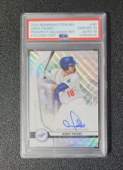 Pop2 PSA 10,10 Gem /125 on card Auto Rc Andy Pages 2020 Bowman Sterling Wave Refractor Prospect Rookie$225Long Beach, CA