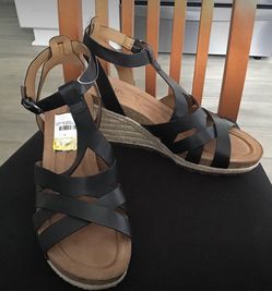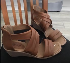 NEW~EUROSOFT by Sofft~Ginnifer~Brown Zipper Strappy Wedge~2 1/4 heel Sandals~Faux Leather~size 9 1/2$10Cape Coral, FL