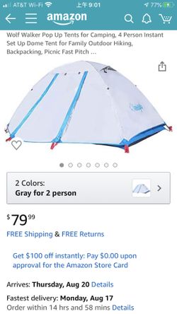 Wolf Walker of 5 stars Wolf Walker Pop Up Tents for Camping, 4 Person Instant Set Up Dome Tent for Family Outdoor Hiking, Backpa$50Baldwin Park, CA