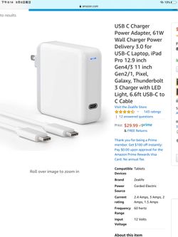 USB C Charger Power Adapter, 61W Wall Charger Power Delivery 3.0 for USB-C Laptop, iPad Pro 12.9 inch Gen4/3 11 inch Gen2/1, Pixel, Galaxy, Thunderbo$22Baldwin Park, CA