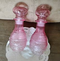 Set Of 2 Glass Pink Bottles Decanters$10Santee, CA