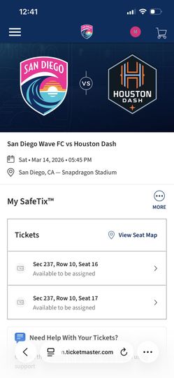 2 Tickets San Diego Wave 3/14$45San Diego, CA
