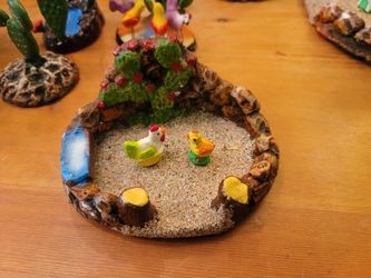 Chick and Nopales Prickly Pear Cactus Near Creek Mexico Vintage Folk Art Pottery Figurine Hand Painted Clay Wire $20Garden Grove, CA