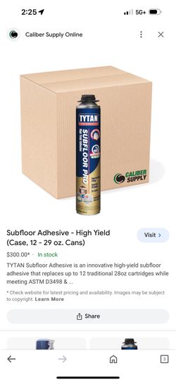 TYTAN Subfloor Adhesive is an innovative high-yield subfloor adhesive that replaces up to 12 traditional 28oz cartridges( Get 12 In Case)$100Mt. Juliet, TN