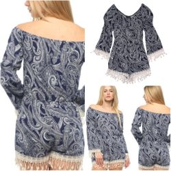 See You Monday Navy Paisley Print Crochet Romper M$25Bonney Lake, WA