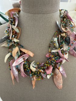 Vintage Chipped Shells Necklace 25" Seed Bead Layered Collar Statement Mermaid Nevklacr $32Newtown, CT