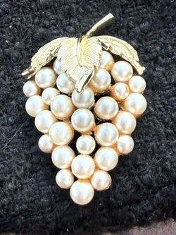 Vintage Crown Trifari Simulated Pearl Grape Cluster Gold Tone Pin Brooch$29Newtown, CT