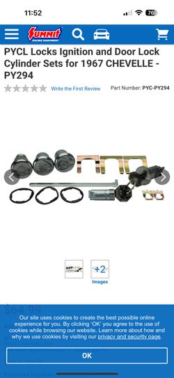 PYCL Locks Ignition and Door Lock Cylinder Sets for 1967 CHEVELLE - PY294$50Compton, CA
