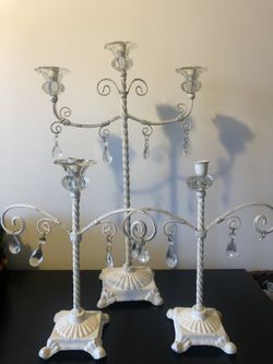 Set of 3 Vintage-Style Metal Candelabras – White with Crystal Drops$40Long Beach, CA