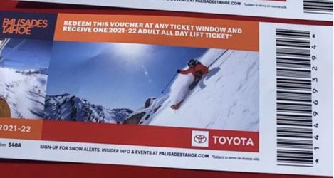 Palisades Ski Lift tickets $100Milpitas, CA