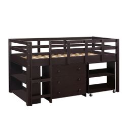 New in Box - Kids Low Loft Bed Twin Size With Dresser and Ladder - Solid Pine Wood - Espresso Color$300Oxnard, CA