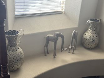 House Decor Silver Tall Vases And 2 Heavy Steel Giraffe Figures $100Tracy, CA