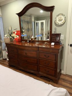 Cal King Bed Frame With Mattress, Dressing With Mirror, Side Table Set. $450Covina, CA